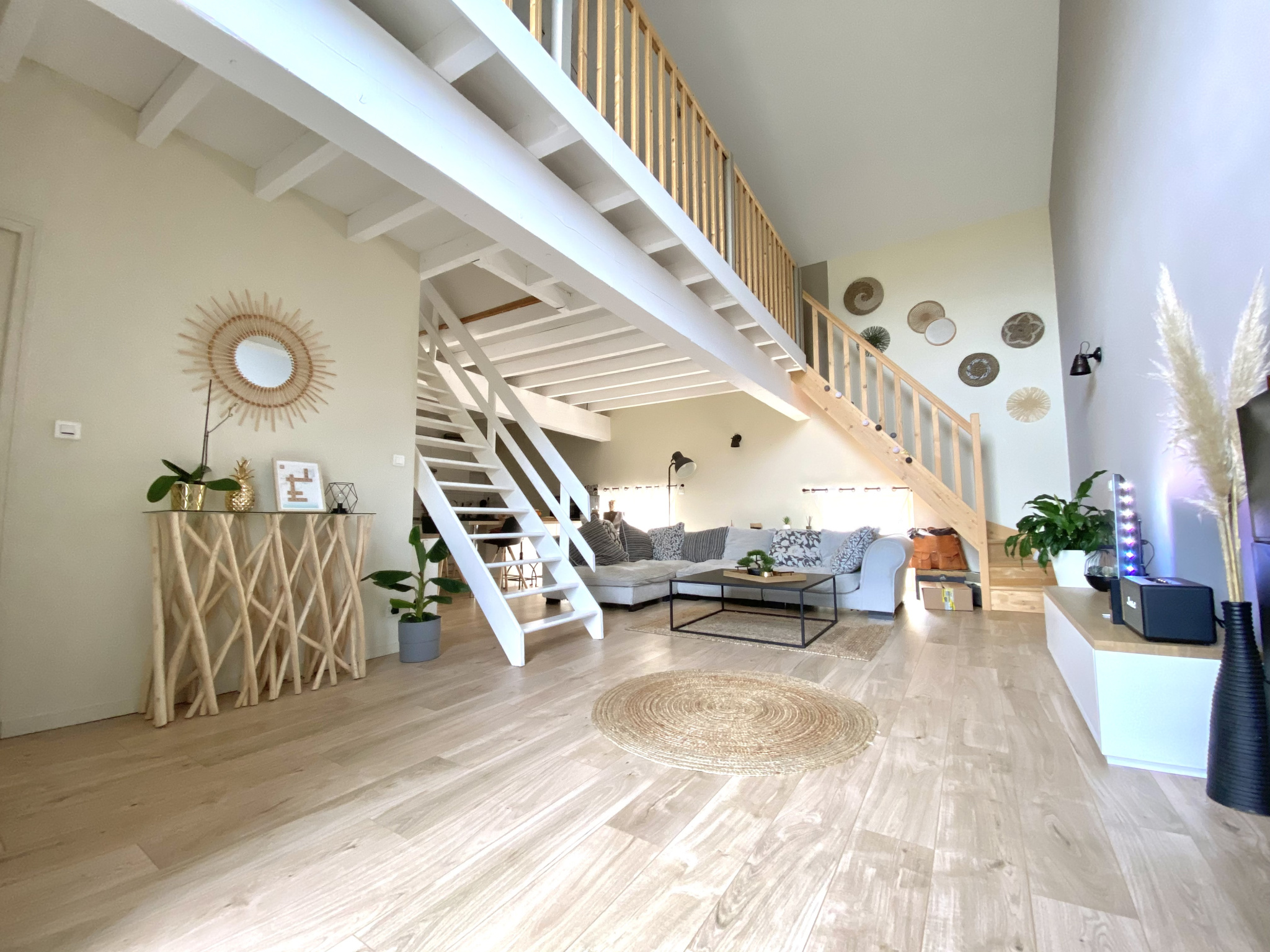 Cet appartement s'ouvre sur un séjour avec cuisine, une buanderie, 2 chambres, une mezzanine pouvant servir de couchage supplémentaire ou de bureau, une salle de bain et WC séparé.