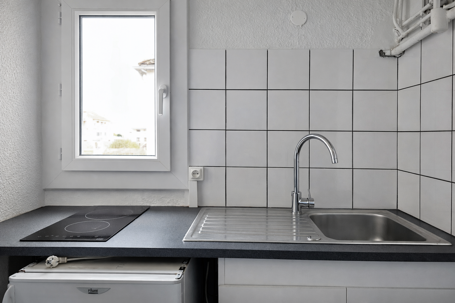 L'appartement s’ouvre sur une pièce de vie lumineuse menant à une cuisine séparée semi equipée. Une salle d'eau pratique ainsi qu’un WC séparé complètent l’ensemble. Le logement dispose d’une place de parking aérienne.