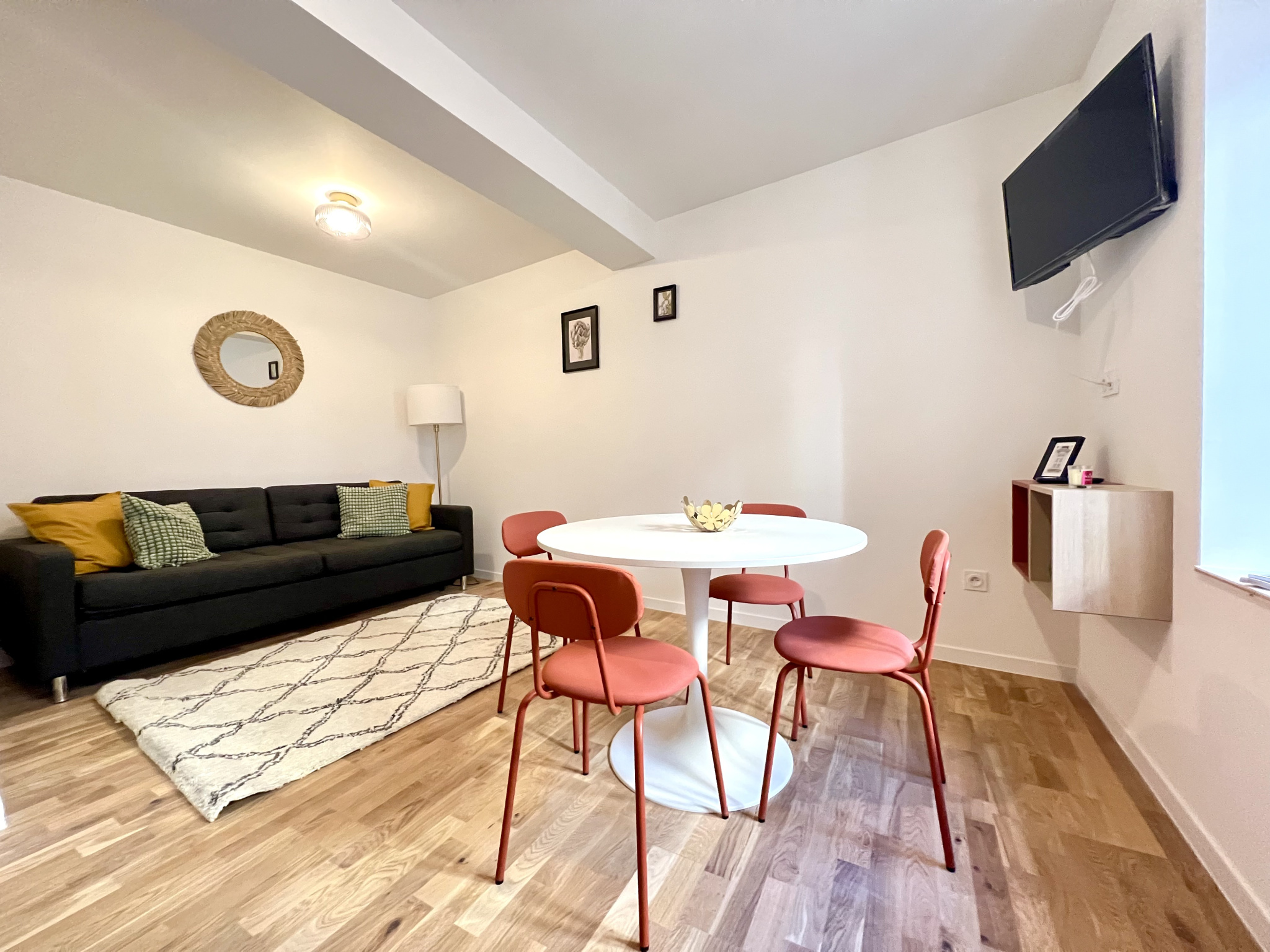 La maison dispose également d’un petit garage permettant de stationner une petite voiture, un véritable atout en centre-ville.