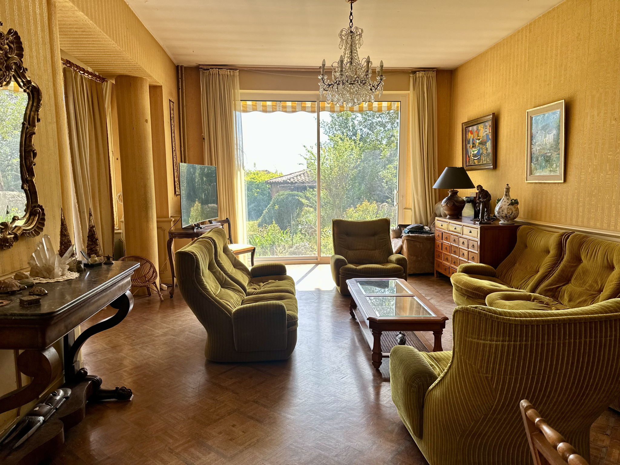 Développant environ 360 m2 habitables, cette demeure séduit immédiatement par ses pièces de vie immenses et baignées de lumière, offrant une atmosphère chaleureuse et raffinée. Le double salon, spacieux et convivial, constitue un espace idéal pour recevoir ou profiter de moments en famille.