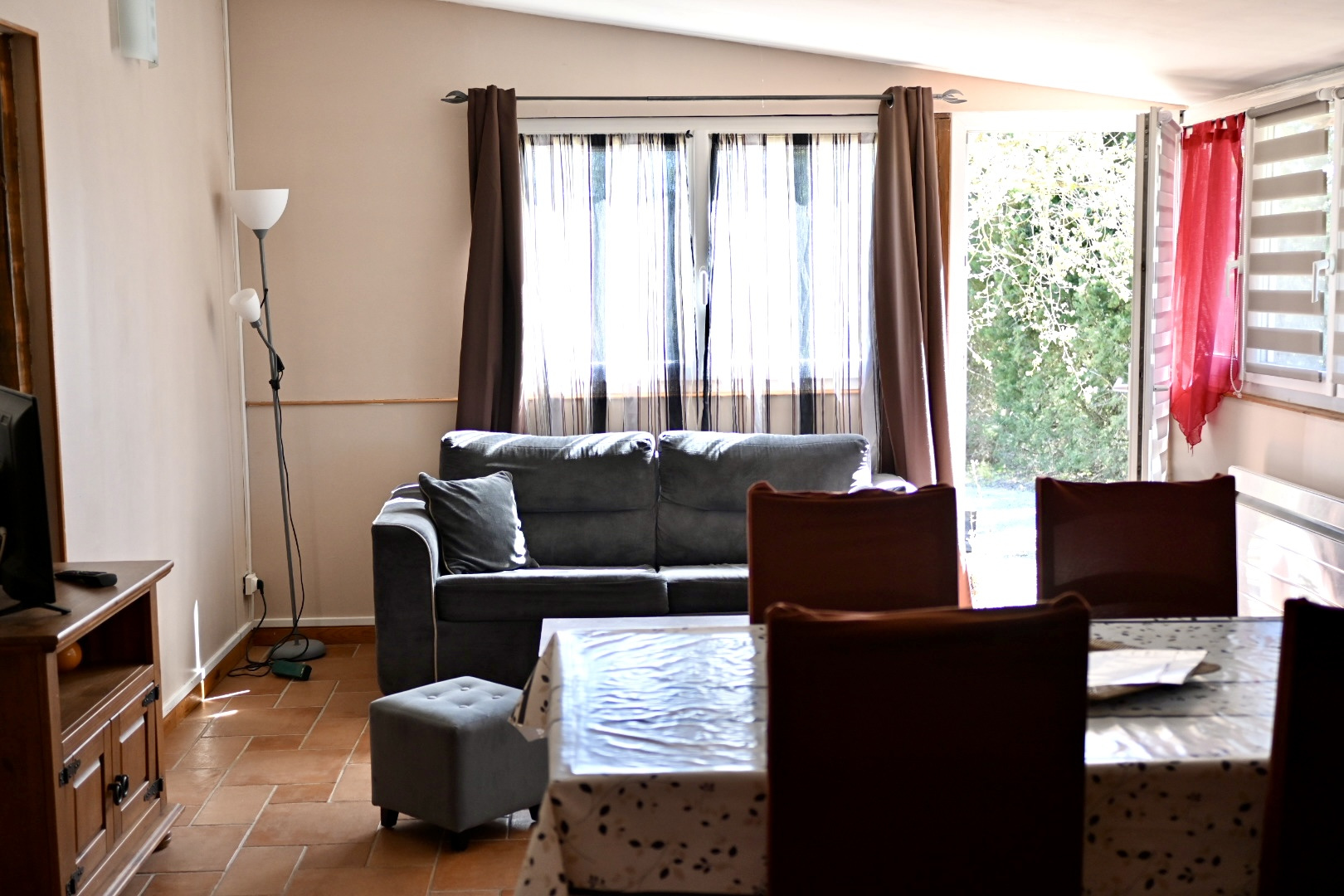 La maison principale (99 m2) Vous serez séduits par cette maison confortable comprenant 3 chambres spacieuses, une pièce de vie lumineuse ainsi qu’une climatisation pour un confort optimal toute l’année. Cet espace est idéal pour une vie de famille paisible.